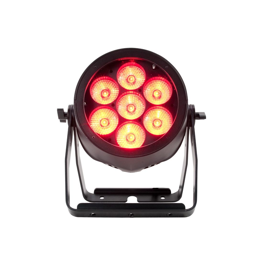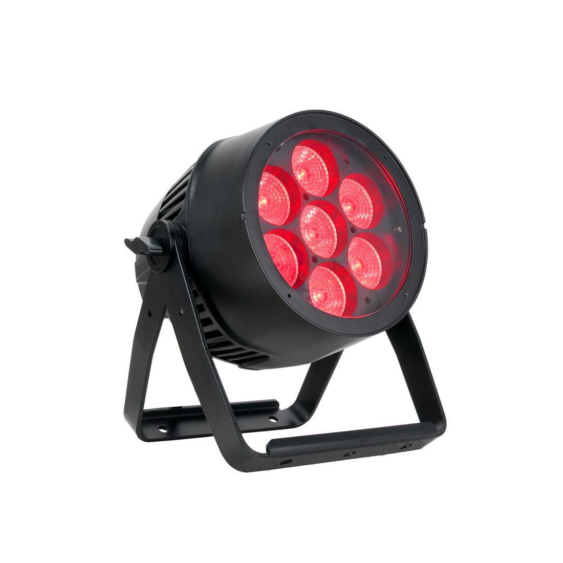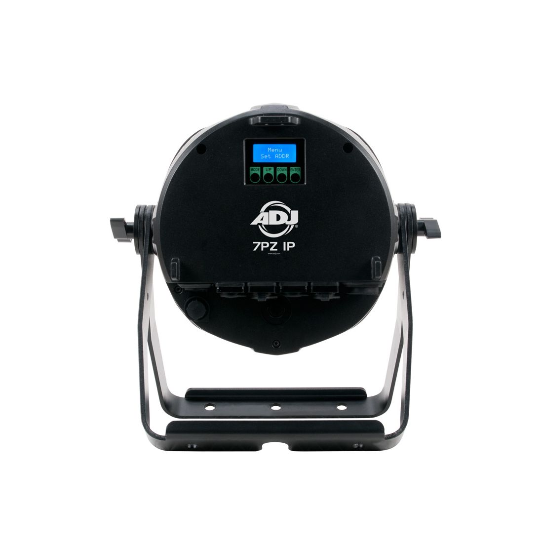 The 7PZ IP is a heavy duty, metal IP65 outdoor rated LED Par with motorized zoom and ADJ's WiFLY EXR wireless DMX built-in. It features seven 15W quad (4-IN-1 RGBW) LEDs with 63 built-in color macros. There are 5 dimming curves plus smooth 16-bit 0-100% electronic dimming. With 5 operational modes, 12 DMX channels modes and 4-button menu with function display, the 7PZ IP has a variety of control options. The zoom range is 5 ~ 45-degrees.