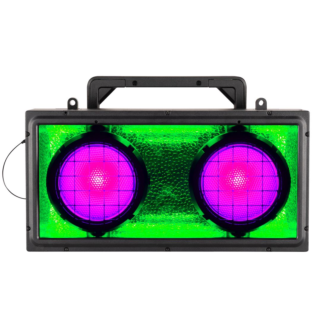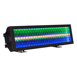 Encore DBX is a versatile and powerful effect fixture designed for creating striking visuals at any event. Featuring a 5-color LED dual-lens blinder/strobe and vibrant RGB background LEDs, it delivers dynamic lighting effects and intense audience interaction. Powered by two 150W RGBAW LEDs and backed by a high-output RGB reflector, the Encore DBX offers a total lumen output of 11,400+, producing rich colors and sharp contrast.