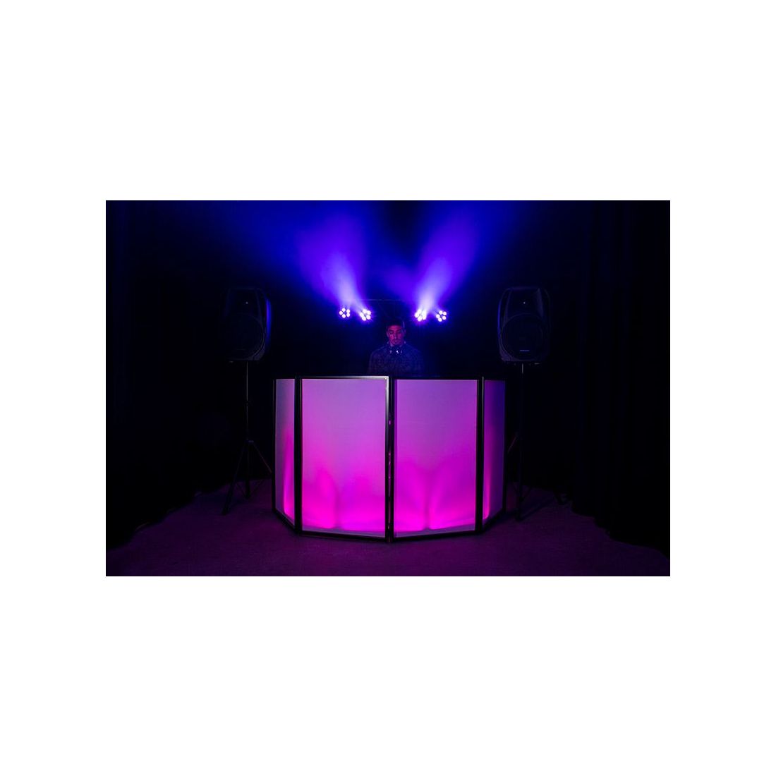 Crafted from durable yet lightweight black metal frames, the Event Facade 2 B is designed to seamlessly blend functionality and aesthetics. The innovative detachable hinges and frames break down effortlessly, enhancing its transportability and storage convenience. The package includes both white and black removable fire retardant scrim, allowing you to create striking black or white facades. When using the white scrim, lighting can be placed behind the facade to create an exciting color changing vibe. Lighting is sold separately.