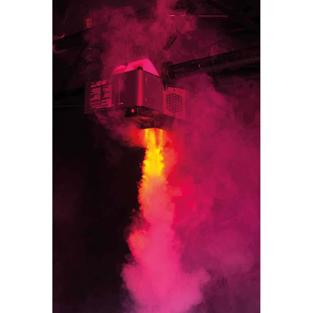 The ADJ Fog Fury Jett is a high velocity vertical Fog Machine that mixes color into the fog from 12x 3-Watt LEDs (3 x Red, 3 x Blue, 3 x Green & 3 x Amber). With new advances in ADJ’s heater technology, the Fog Fury Jett produces a dry even blast of fog over 25 feet (7 meters) in the air. It has a special heating element design that uses an oil type transmission throughout the pipeline to prevent clogging. It is also equipped with a high performance Italian pump system for optimum output. ADJ’s Electronic Thermo Sensing (ETS) technology is on-board to maintain optimum heat levels with no warm-up time between fog blasts.