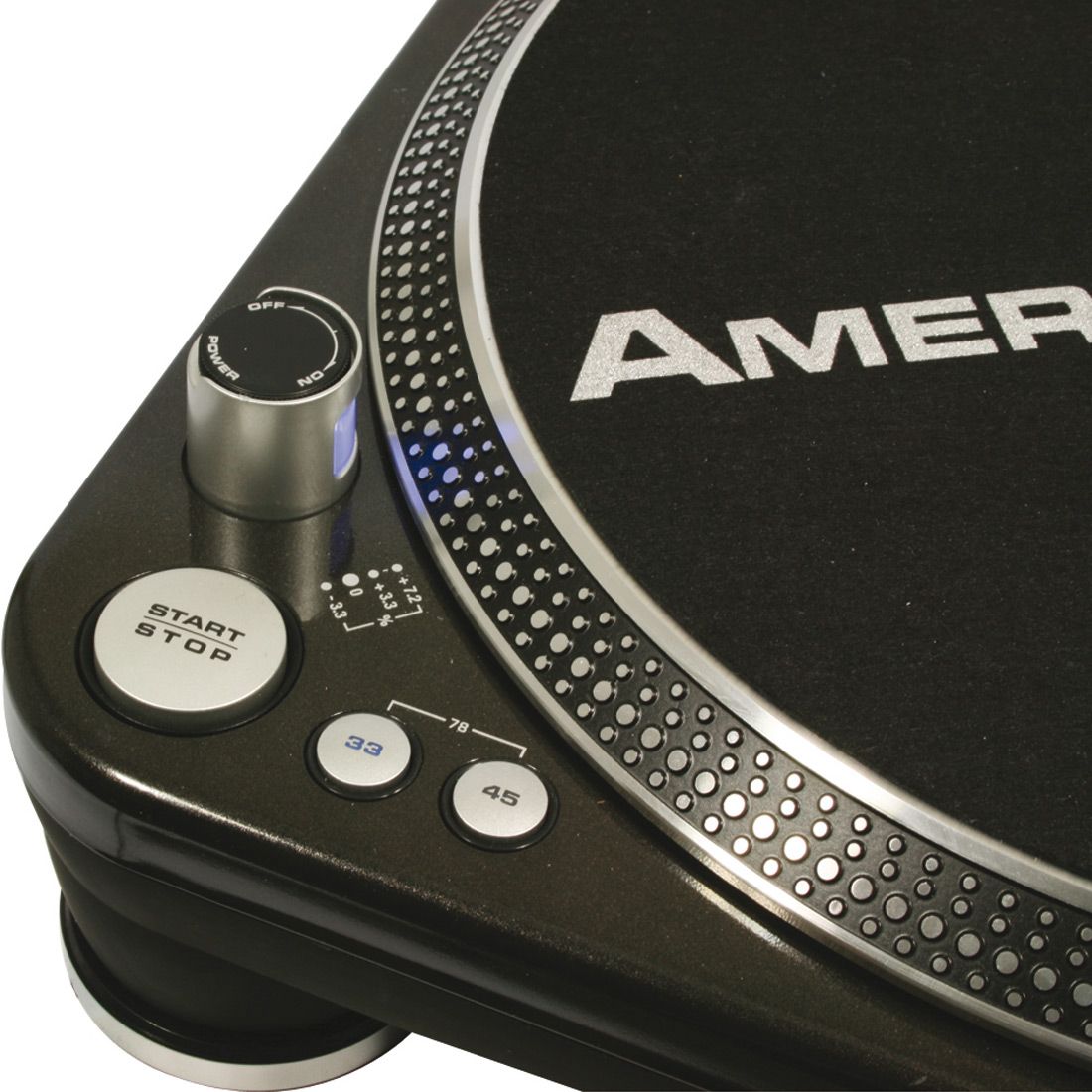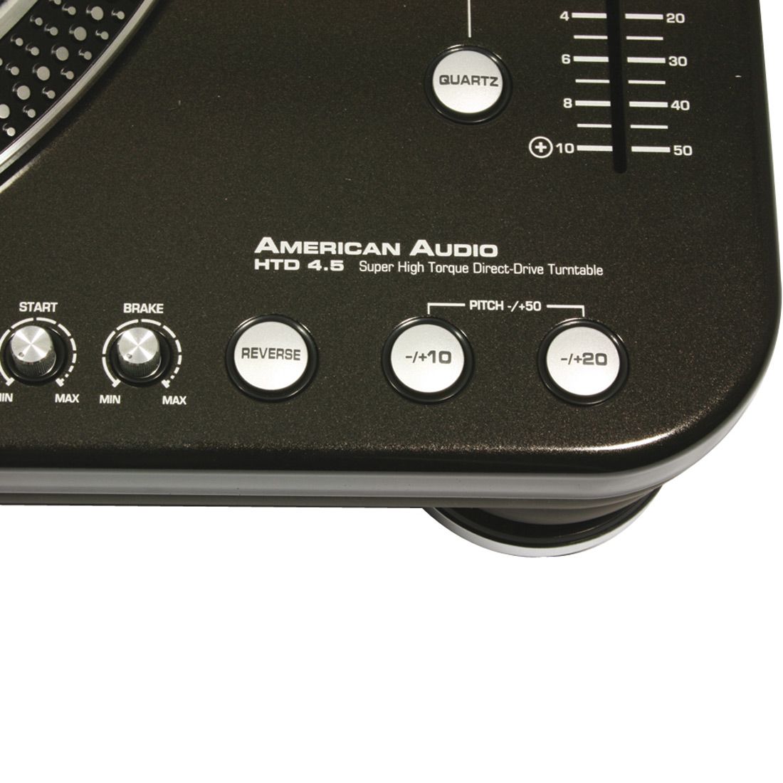- +/- 10%, +/- 20% or +/- 50% pitch adjustment (locks in precision 33, 45 or 78 speed control)