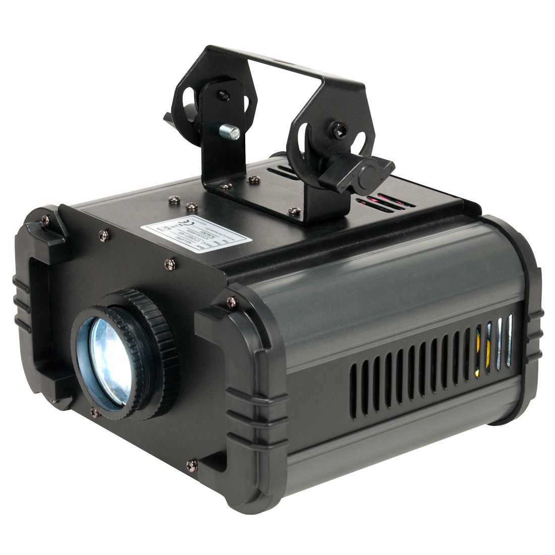The Ikon LED is a high output single Gobo Projector powered by a bright 60W (7500K) white LED. This fixture used high quality optics for crisp, clear projection. User can adjust the LED brightness and Gobo rotation on the rear of fixture or by the included wireless RF remote control.