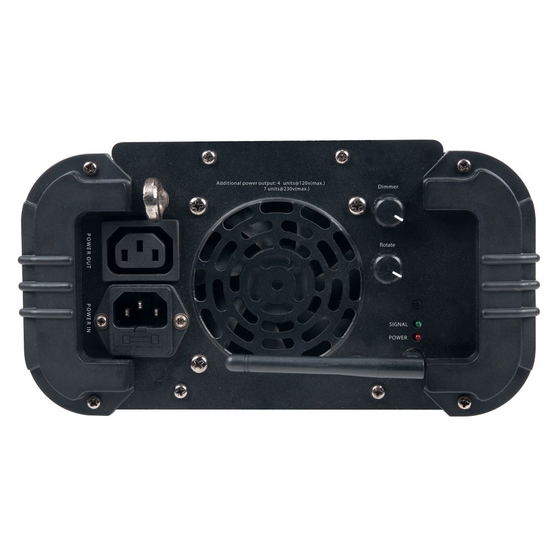 - Adjustable dimmer and rotate knob on rear panel