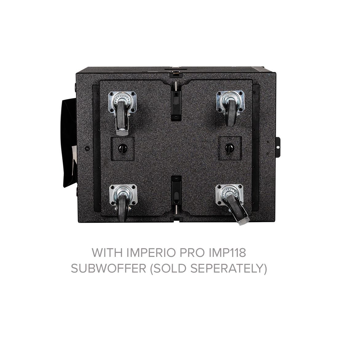 • Built-in locking pin holds the IMC118 caster board to the Imperio Pro IMP118 subwoofer for optimum protection of the grill and driver during transport.