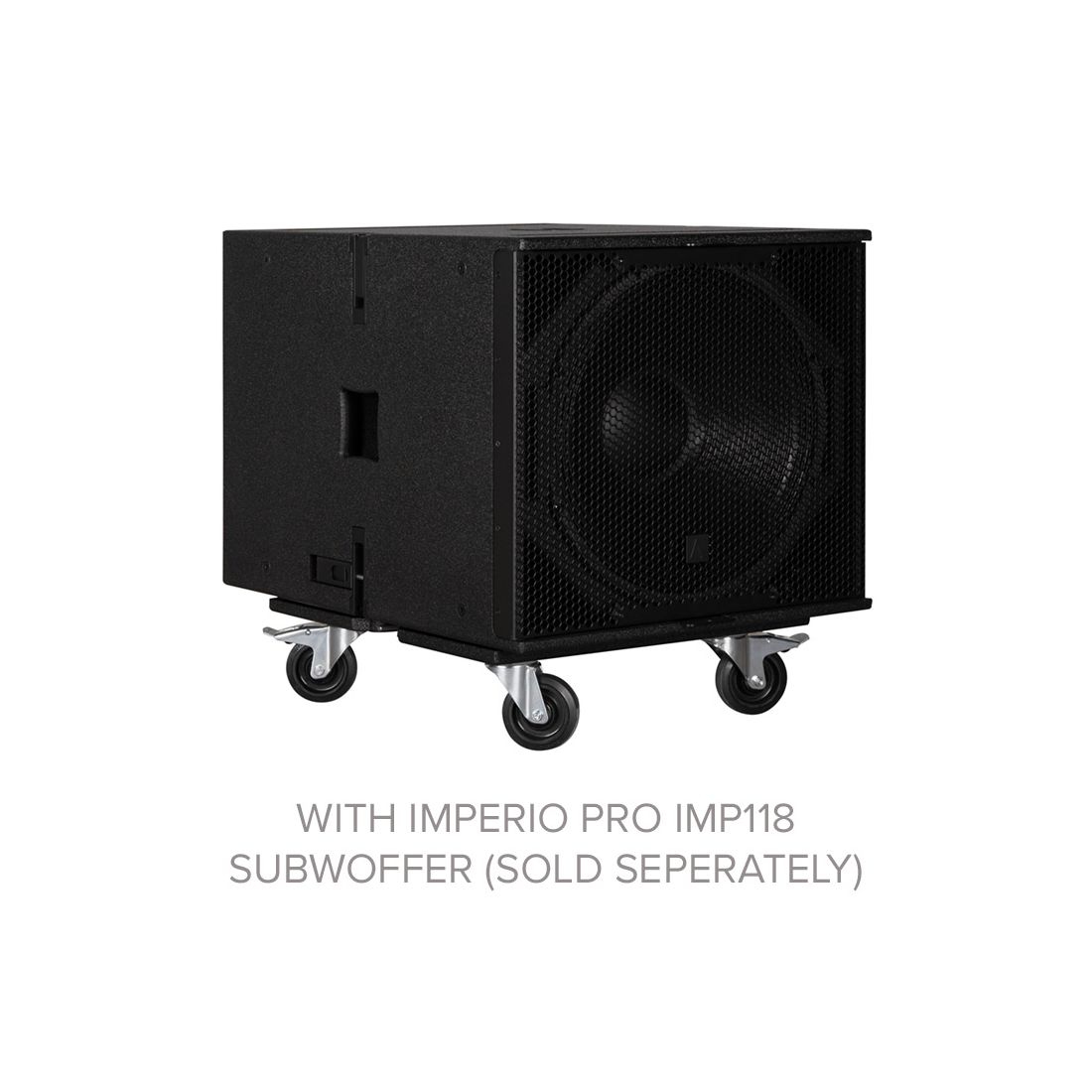 Removable caster board with four 4-inch casters. Fits the Imperio Pro IMP118 subwoofer. For mobile and touring applications. Sold separately.