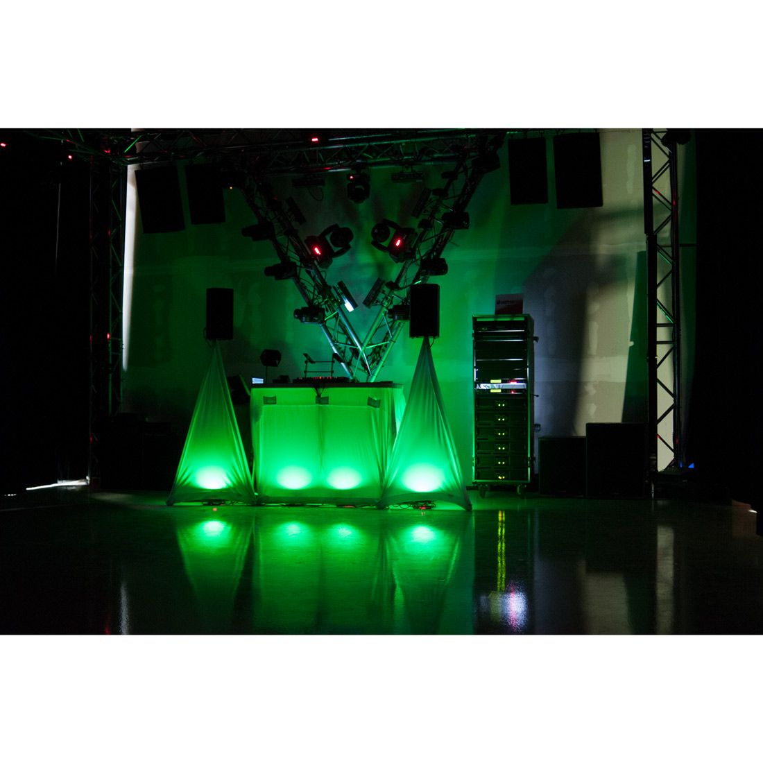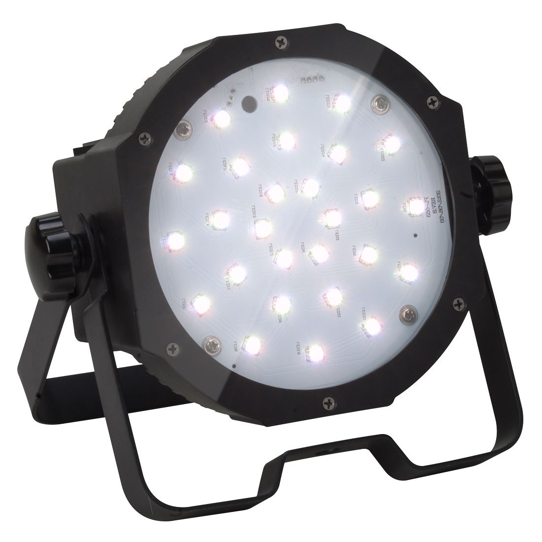 The ADJ Mega GO Flood Par is a rechargeable lithium battery powered low profile LED Par Can that offers the creativity of RGB color mixing for stage or wall washing, has a 120-degree beam angle, plus the freedom to set up your fixture where ever you wish without the restrictions of power. With a wide beam angle and short throw from it’s SMD (Surface Mount Diode) LEDs , the Mega Go Flood Par is designed for short , wide wall washing and backlighting of Scrim.