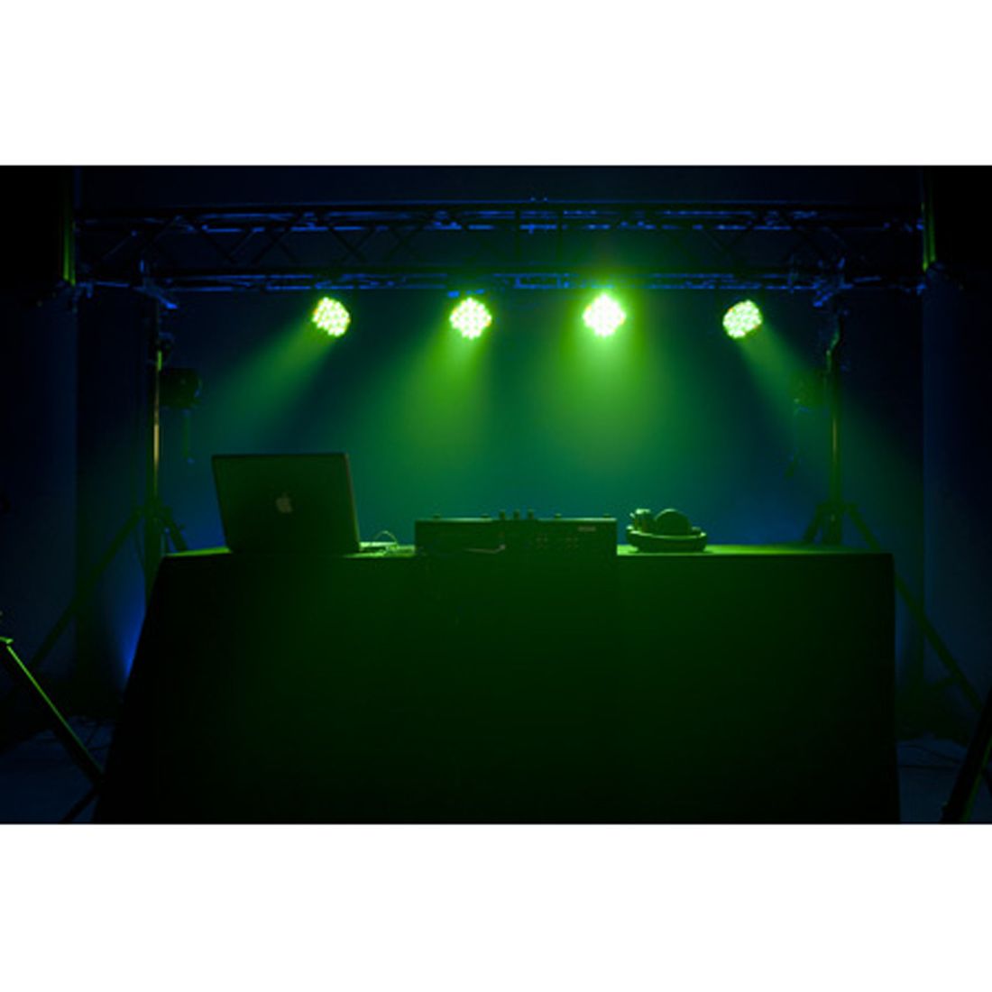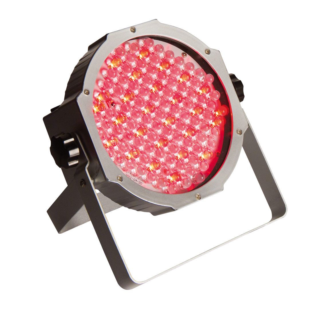 - Ultra bright slim flat black Par Can with 108 10mm LEDs (26 Red, 46 Green, & 36 Blue LEDs)