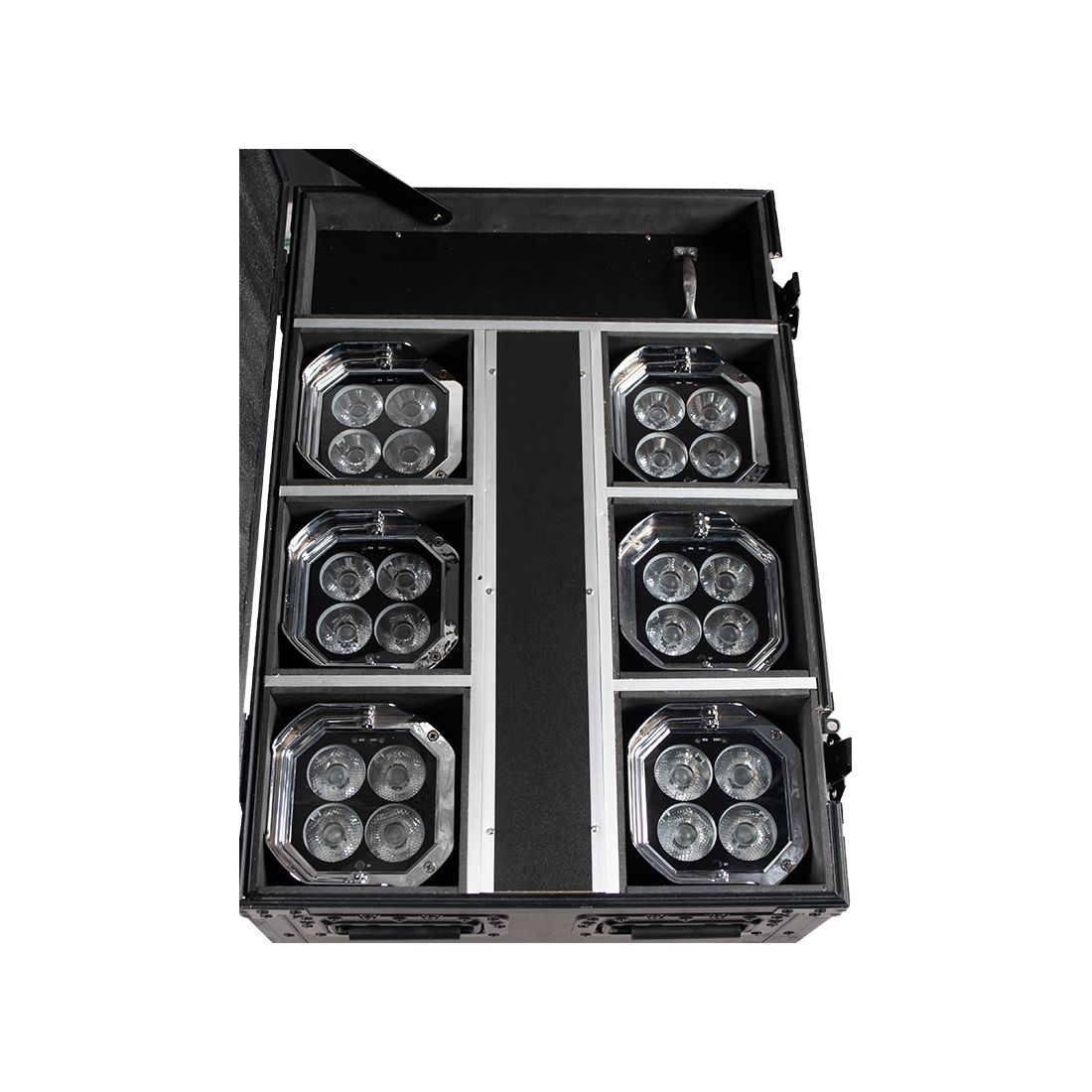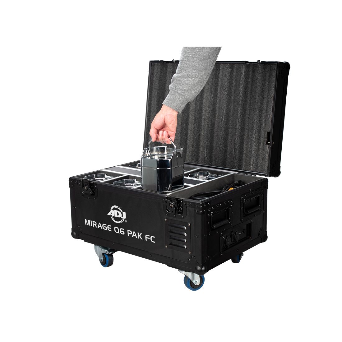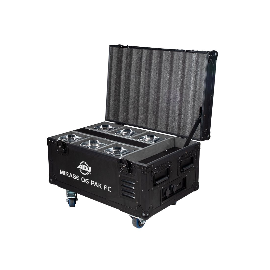 The ADJ Lighting Mirage Q6 PAK is an all-in-one event up lighting system with six IP65 rated, battery powered fixtures and a durable flight case with an on-board battery charging solution.