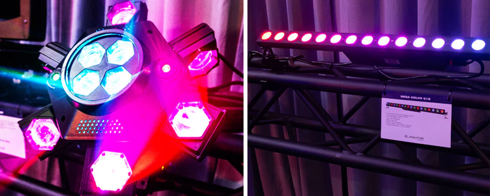 Eliminator Lighting also captured plenty of attention, especially among DJs and mobile entertainers. The Centerdroid stood out as a high-energy centerpiece, delivering constantly moving aerial effects that transformed the space with vibrant color and motion. The Mega Color Q18 impressed with its ability to deliver smooth, even washes and rich color output from a compact form factor, making it a flexible option for uplighting, wall washing, and accent applications. Meanwhile, the Mega Par Z Wash sparked conversations thanks to its motorized zoom and impressive RGBW output, offering users the ability to transition easily from tight beams to wide washes using a single fixture.