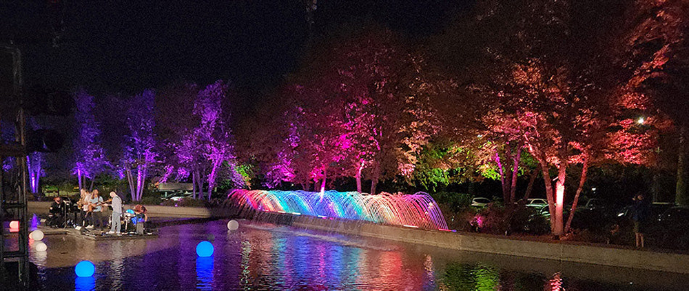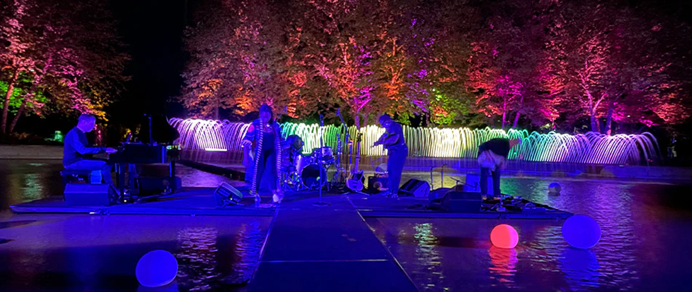 Last fall, a collection of ADJ ElectraPix Par 7 LED fixtures helped transform the Mercedes-Benz Newmarket Water Feature in Newmarket, Ontario, Canada, into a stunning open-air performance space for the Splash of Culture event. Used to illuminate towering trees behind a floating stage, the fixtures delivered bold color, impressive coverage, and completely cable-free convenience, providing the perfect visual complement to an evening of live music under the stars.