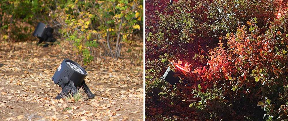A key advantage for the EJSE AV team was the fixture’s fully wireless capability. Featuring built-in Lithium-ion rechargeable batteries and wireless DMX connectivity, the ElectraPix Par 7 units eliminated the need for power and data cabling — a significant benefit when the fixtures needed to be distributed across a wide expanse of trees.