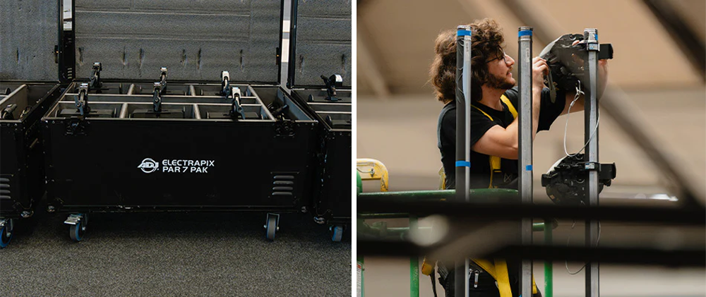 “We love the ElektraPix Par 7s,” enthuses Tommy. “We are generally big on battery-powered and wireless up-lights at Props AV, in fact they are one of the things we move most around here. We had 340 or so of our previous light. We're not quite at that level with the ElectraPix yet, but we're slowly moving in that direction. It works for all the normal applications when we’d need a battery-powered up-light, but it's also lightweight enough – even with the battery – that we're able to throw it up in a rig like this. And the pixel mapping combined with the backlight effect truly sets it apart from any other Par on the market.”