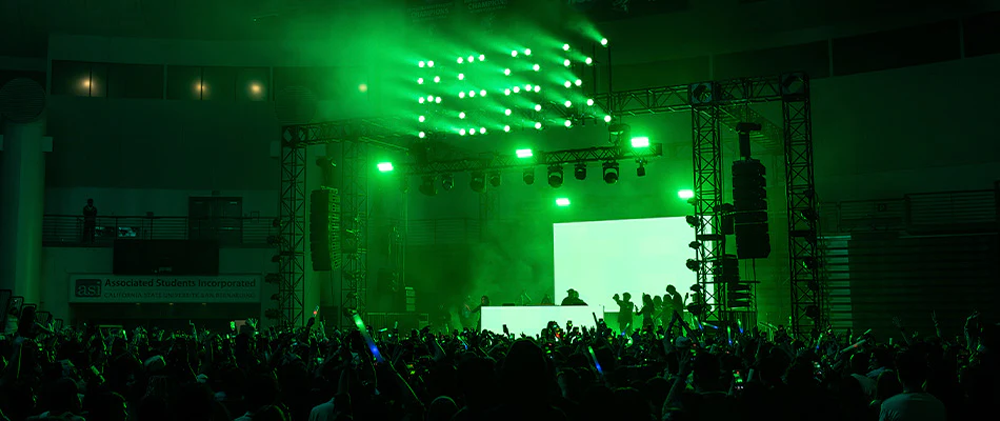 Organized by Associated Students, Inc. (ASI), the university’s student government, the event marked the first rave-style production on campus in almost a decade. With a brief to go bigger than ever before, Props AV – a Beaumont, CA-based production company with a long history of collaboration with ASI – pulled out all the stops.
