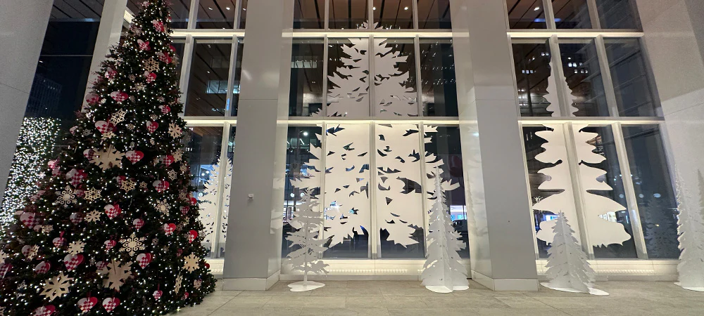To further transform the space, 32 UBL12H linear LED fixtures were installed to uplight festive tree decals applied directly to the building’s windows. Although discreetly positioned, their impact on the overall environment was significant.