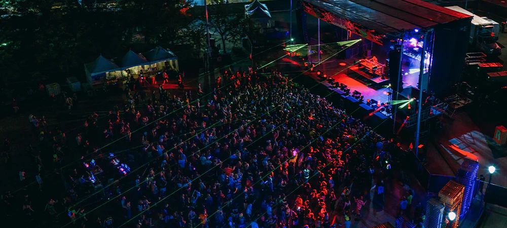 At one end of the plaza, a Stageline SL320 40’ mobile stage anchored the production, rigged exclusively with ADJ lighting fixtures to deliver a bold, immersive look that matched the scale and energy of the festival. Lighting, staging, video and audio for the event was supplied by Reno-based Starsound Audio Inc. Led by president and owner Nick Sorrentino, the company has invested heavily in ADJ equipment over the past three years to the point that it is able to cover all the lighting requirements of a stage of this size using ADJ fixtures exclusively.