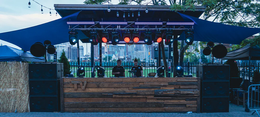 The longest running and most iconic nightclub in Detroit, TV Lounge is the spiritual home of electronic music in Motor City. Throughout the summer, the venue’s indoor space is occasionally augmented for special events by transforming its patio into an open-air dance floor with the city skyline providing an impressive backdrop. The task of carrying out this transformation from a technical perspective falls to ART Visuals, the recently formed lighting arm of well-established Detroit audio production and integration company Audio Rescue Team. ART Visuals was formed following the acquisition by Audio Rescue Team of Ryan Richards Visuals. A well-known and much-respected lighting professional in Detroit, the latter company’s eponymous owner has joined Audio Rescue Team as Lighting & Visuals Manager and was responsible for designing, programming, and operating the lighting for the Stacey Pullen show at TV Lounge.
