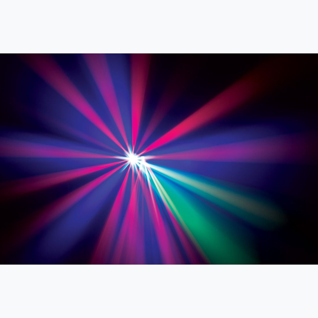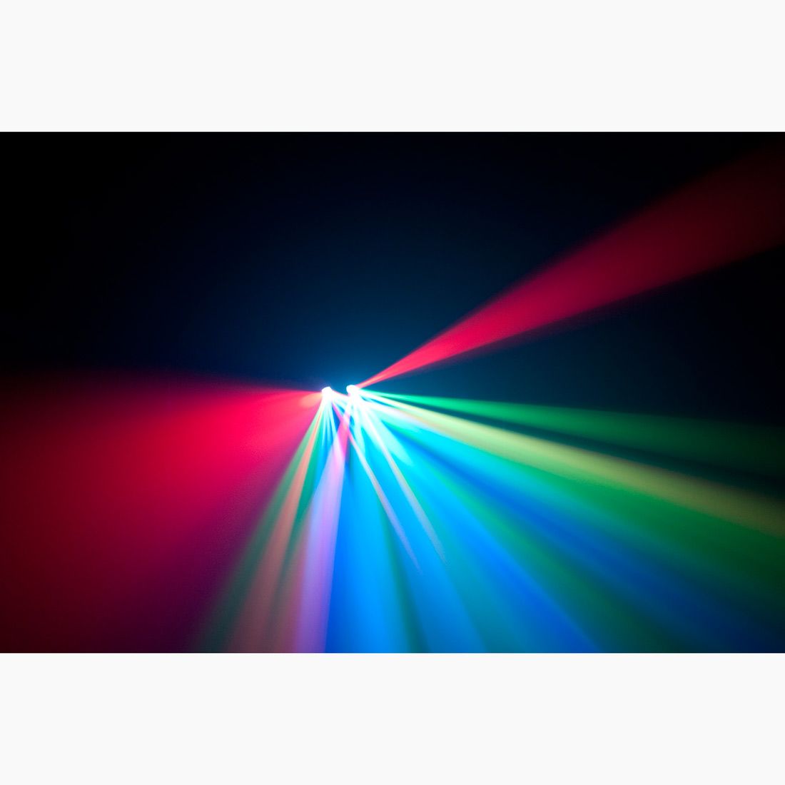 - LED dual mirrored Moonflower with sharp Red, Green & Blue high output colored beams + LED Strobe in one light