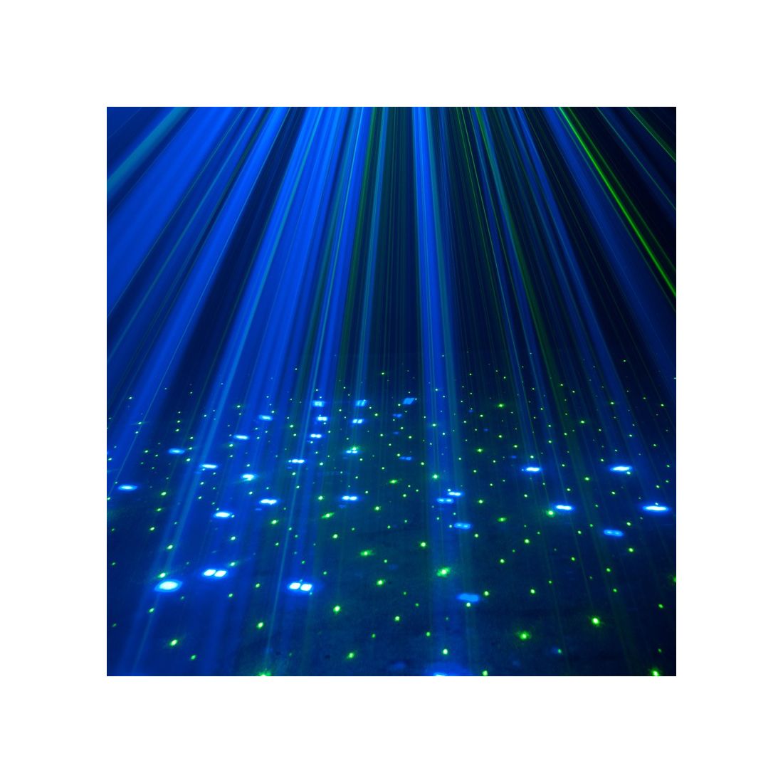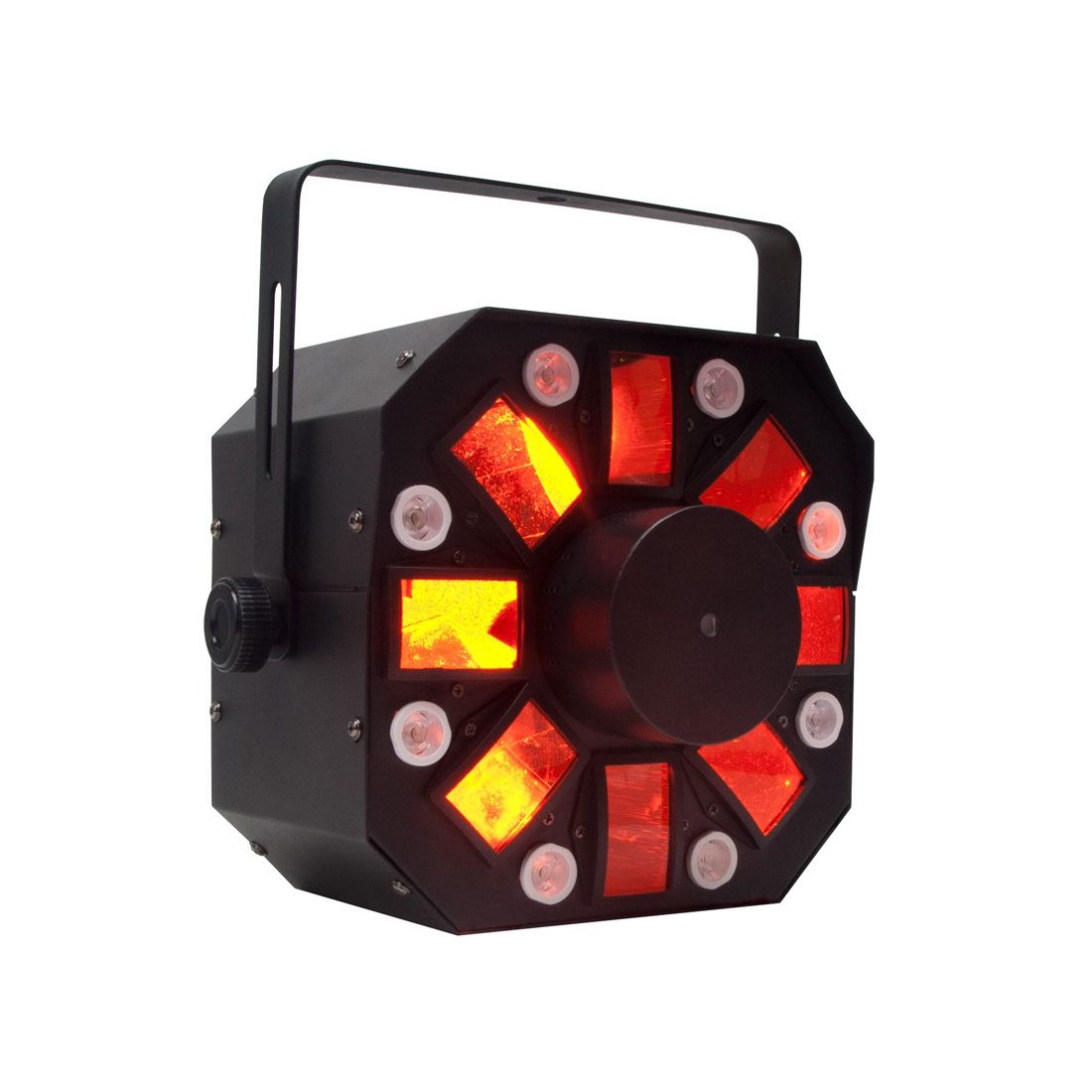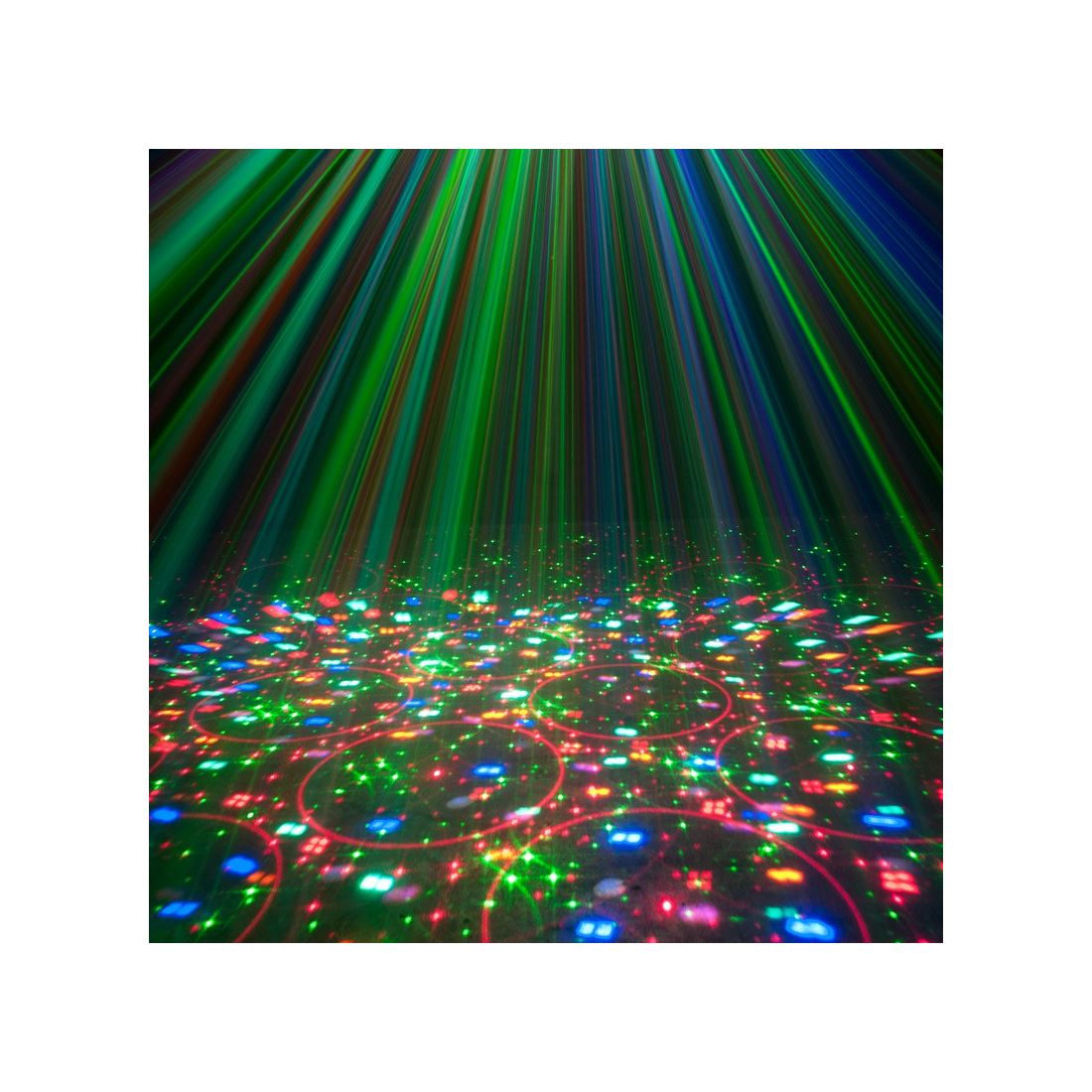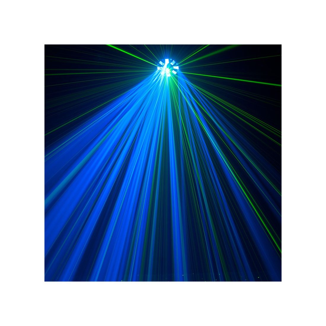 - High Output 3 FX in 1: Moonflower, Strobe and Laser effect with 6 x 5W (RGBWAP) HEX LED’s + 8 x 3W White LED’s + Red & Green Class 3B Laser technology produces color-changing beams of light