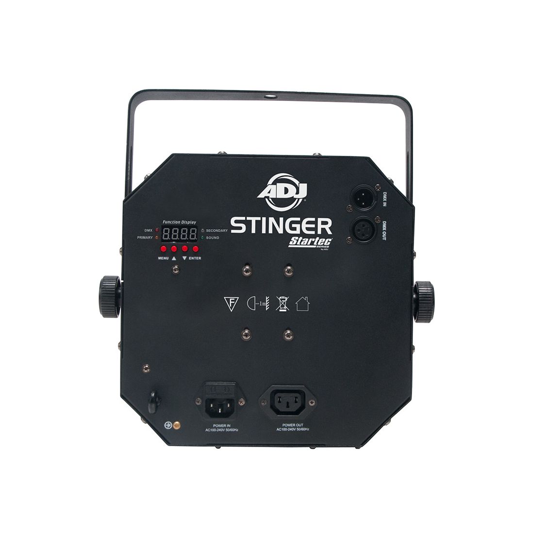 Weighing just 11 lbs. (5kg), mobile DJs, DIY touring bands, and event organizers can take the highly-portable Stinger on the road as part of their mobile setup, giving them a compact but powerful effect at an affordable price. Small clubs, lounges and bars bound by a strict budget can also utilize the varied effects of the Stinger without breaking the bank. The Stinger is part of the ADJ Startec Series.