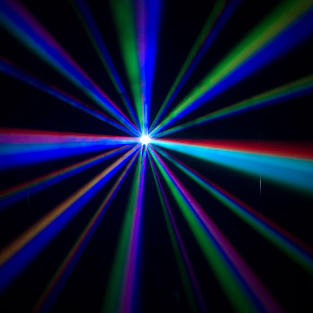Revolutionary New Tri Color Technology that produces colorchanging beams of LED light. Superior Optics produce Razor Sharp Beams across a Dance Floor or Great effect on wall. Rich Saturated Colors and Long Life LED.