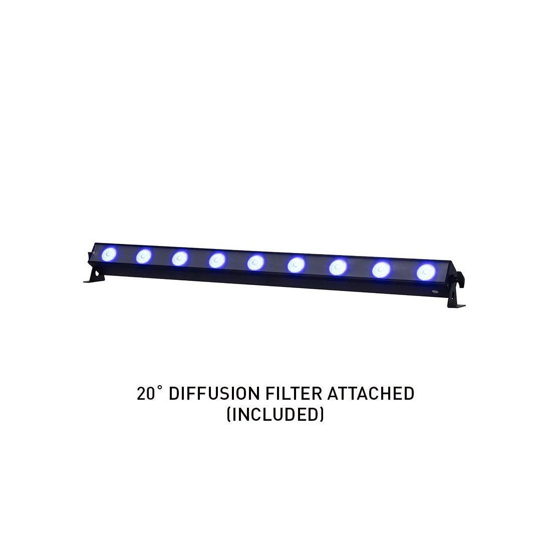 • 9 x 20W Ultra bright (Red, Green, Blue, Amber, Lime and UV) LEDs