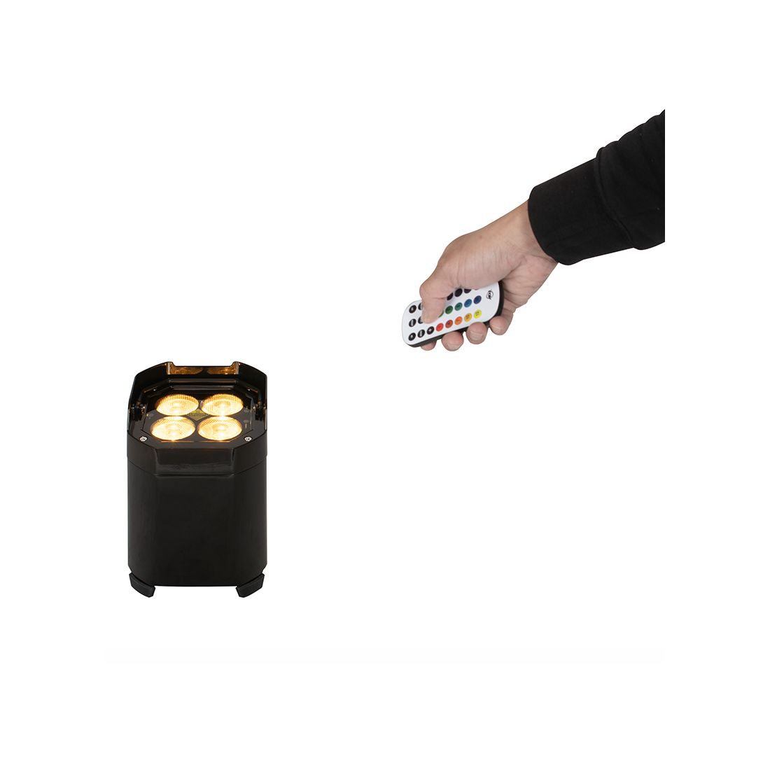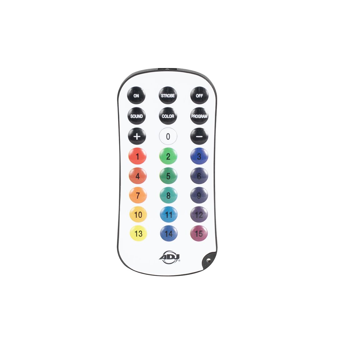 The UC-IR24 infrared remote gives you control of various functions to a variety of ADJ fixtures with “IR” capabilities. To control the fixture you must aim the remote towards the IR sensor and be no more than 5 meters away.