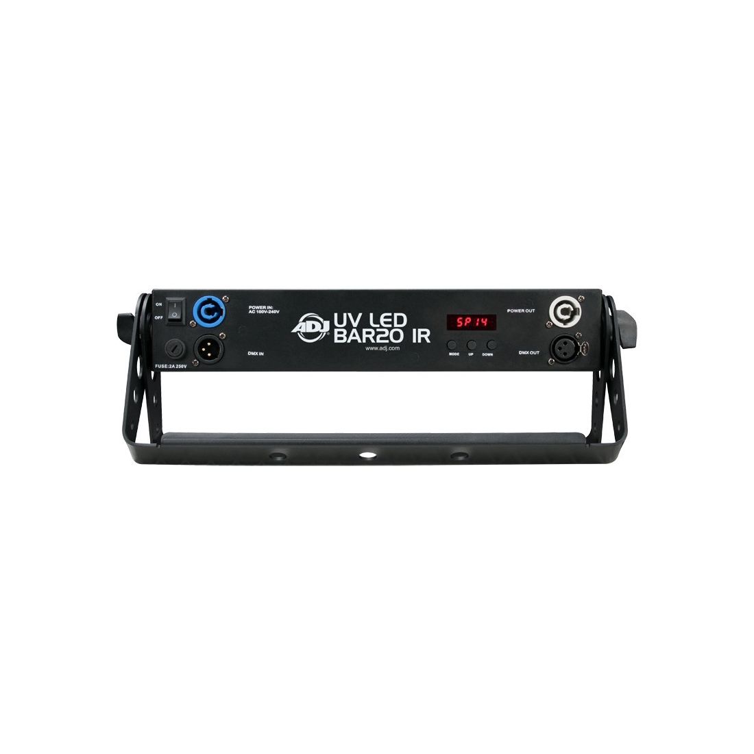 The UV LED BAR 20 IR is a high output ultraviolet LED backlight that comes with a wireless remote for easy control of On/Off and strobe speed. It’s powered by 20x 1-Watt UV LEDs with a maximum power draw of only 30W and has a beam angle of 10-degrees x 40-degrees. With a LED life of approximately 50,000 hours, the UV LED BAR 20 IR is a nearly maintenance free solution for washing stages, nightclubs, Bowling Center, Roller Rinks and Fun Centers with ultraviolet light.