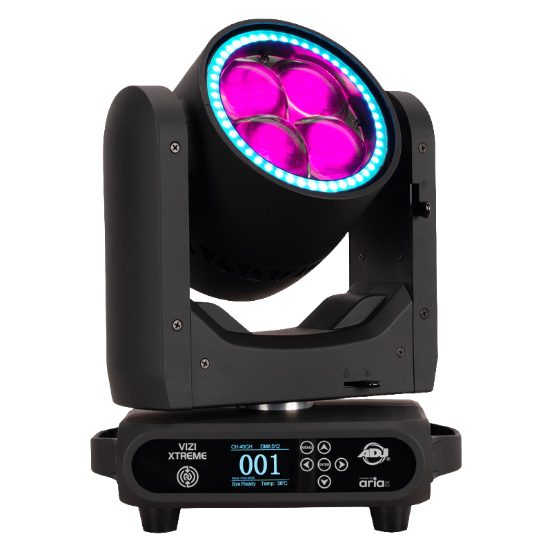The VIZI XTREME redefines compact performance with its high-speed movement, vivid color output, and exceptional versatility. Powered by four 60W RGBL primary LED's and a ring of forty-eight 0.5W RGBW LED's, it produces a stunningly bright beam with smooth color blending and a color temperature range of 2700K–10,000K. Each primary LED offers individual pixel control, while the ring features six independently controlled zones for creative eye candy effects.