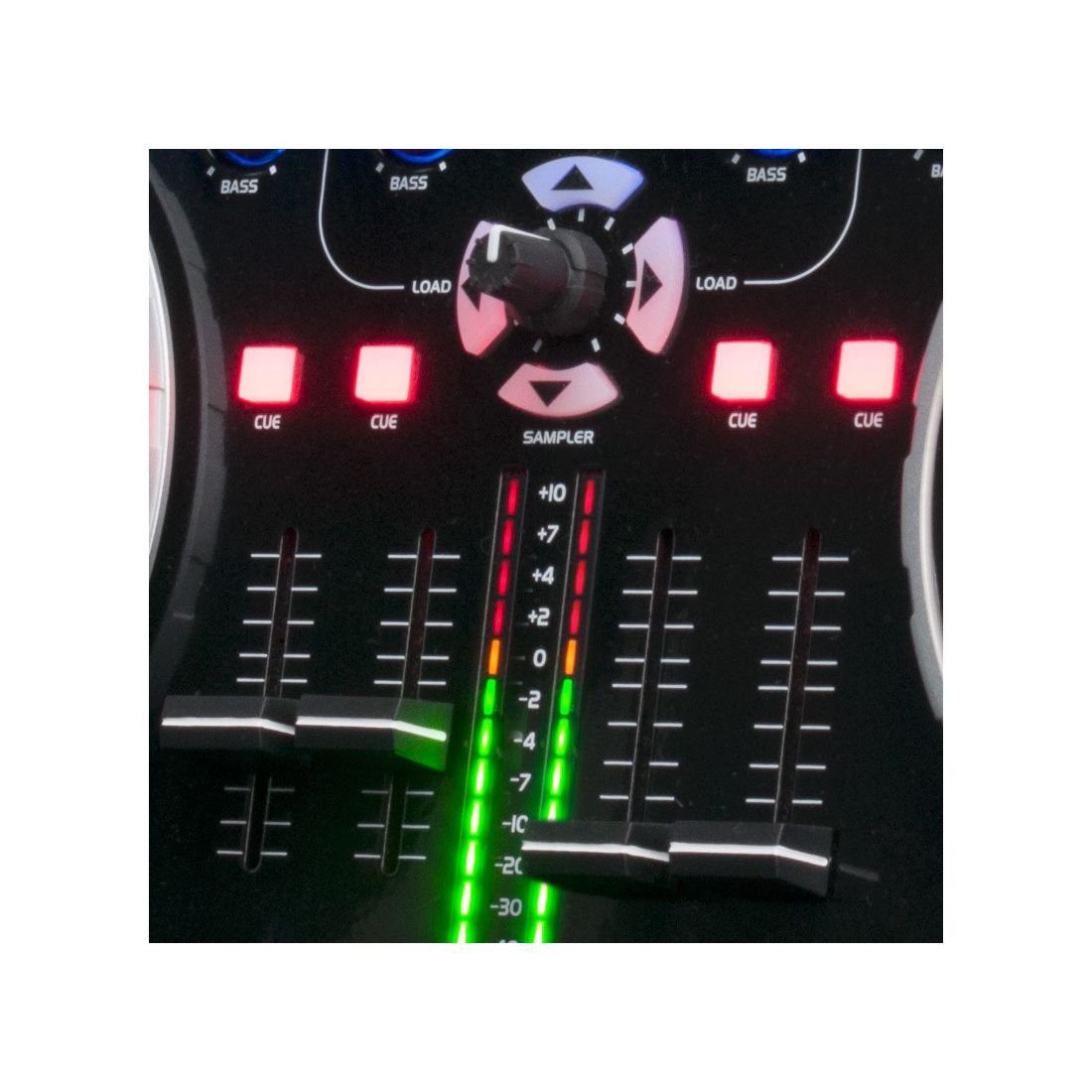 - AUDIO FEATURES:- 24-bit 48 kHz analog audio- 16-bit 48 kHz USB audio- 10-bit resolution on all analog fader controls- THD <0.1%*- Channel separation >60dB*- S/N ratio >85dB*- Analog channel audio latency < 1msec- Selectable USB modes: 4 in 4 out mode for running software effects on phono/line analog channels or 2 in 8 out mode for running 4 software channels and master recording- 2 msec response on all buttons- 4 msec response on all rotary and linear faders- 1 msec USB latency
