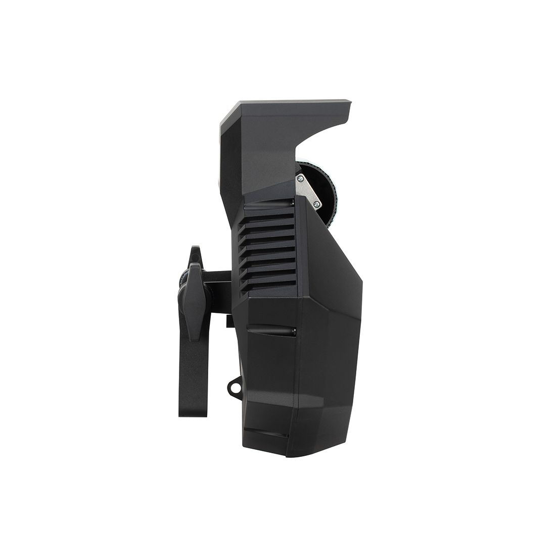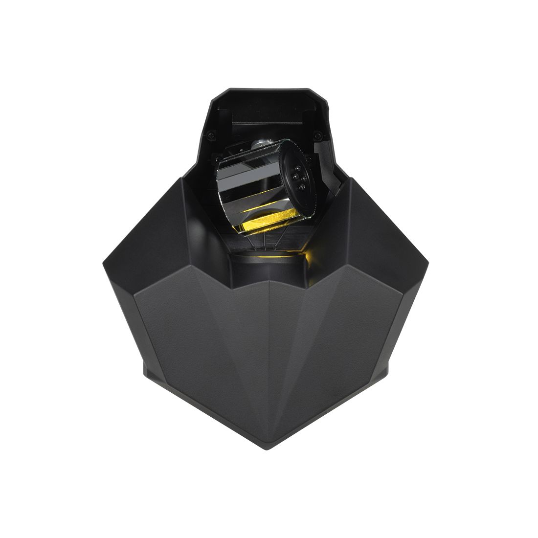 The Vortex may be controlled by DMX, Remote Device Management (RDM), sound activation or in show mode from a 4-buttom control menu with a digital display. The quick barrel movements run 180-degress on the X-axis and 260-degrees on the Y-axis. The beams may be focused from manual focusing knob.