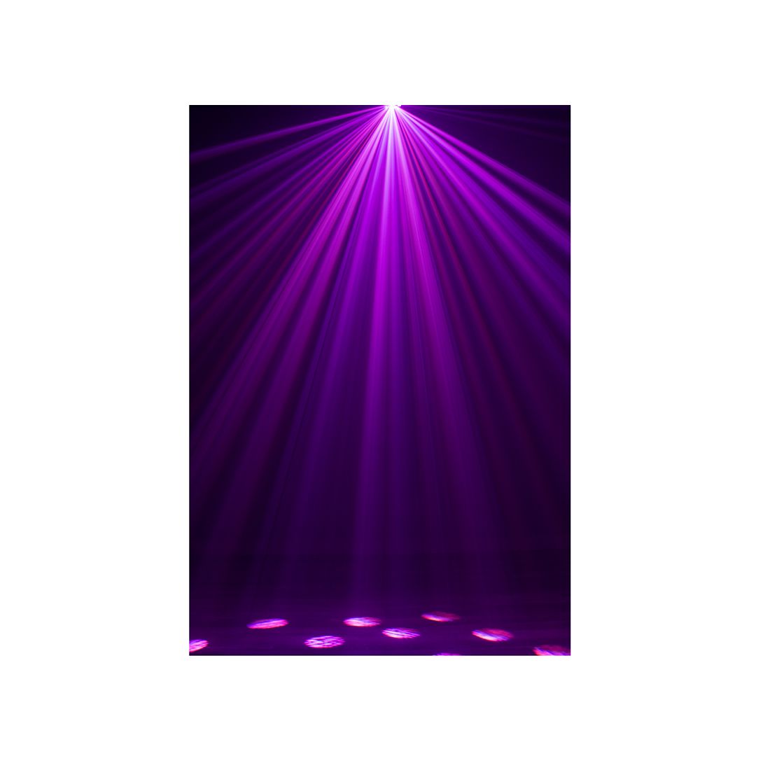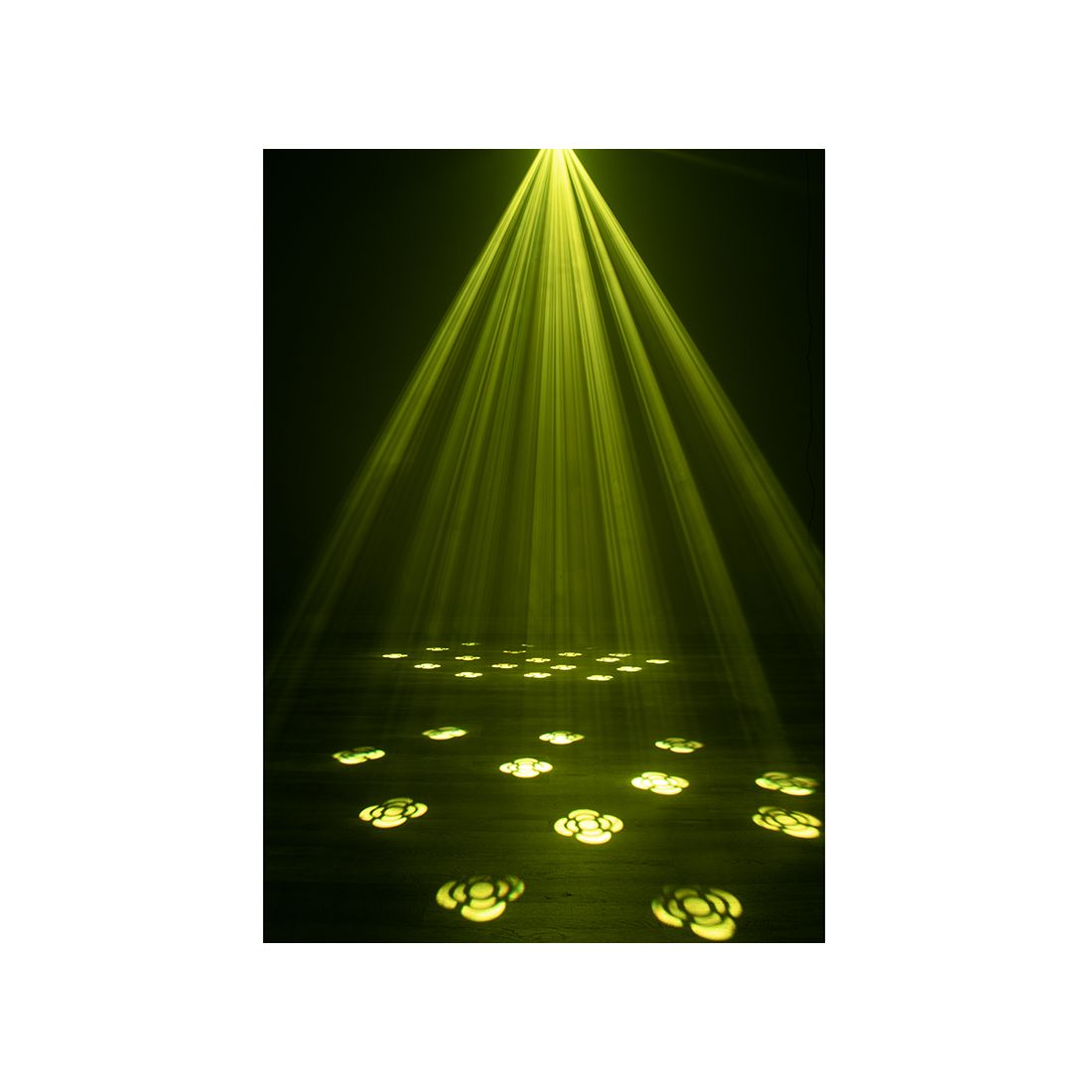 The Eliminator Vortex is a classic moonflower effect with a barrel mirrored scanner that produced multiple razor-sharp 5-degree beams of light powered by an 80W LED engine. It features 10 Color/GOBOs combinations, GOBO shake effect, mesmerizing strobe effects and has 6 built-in light shows.